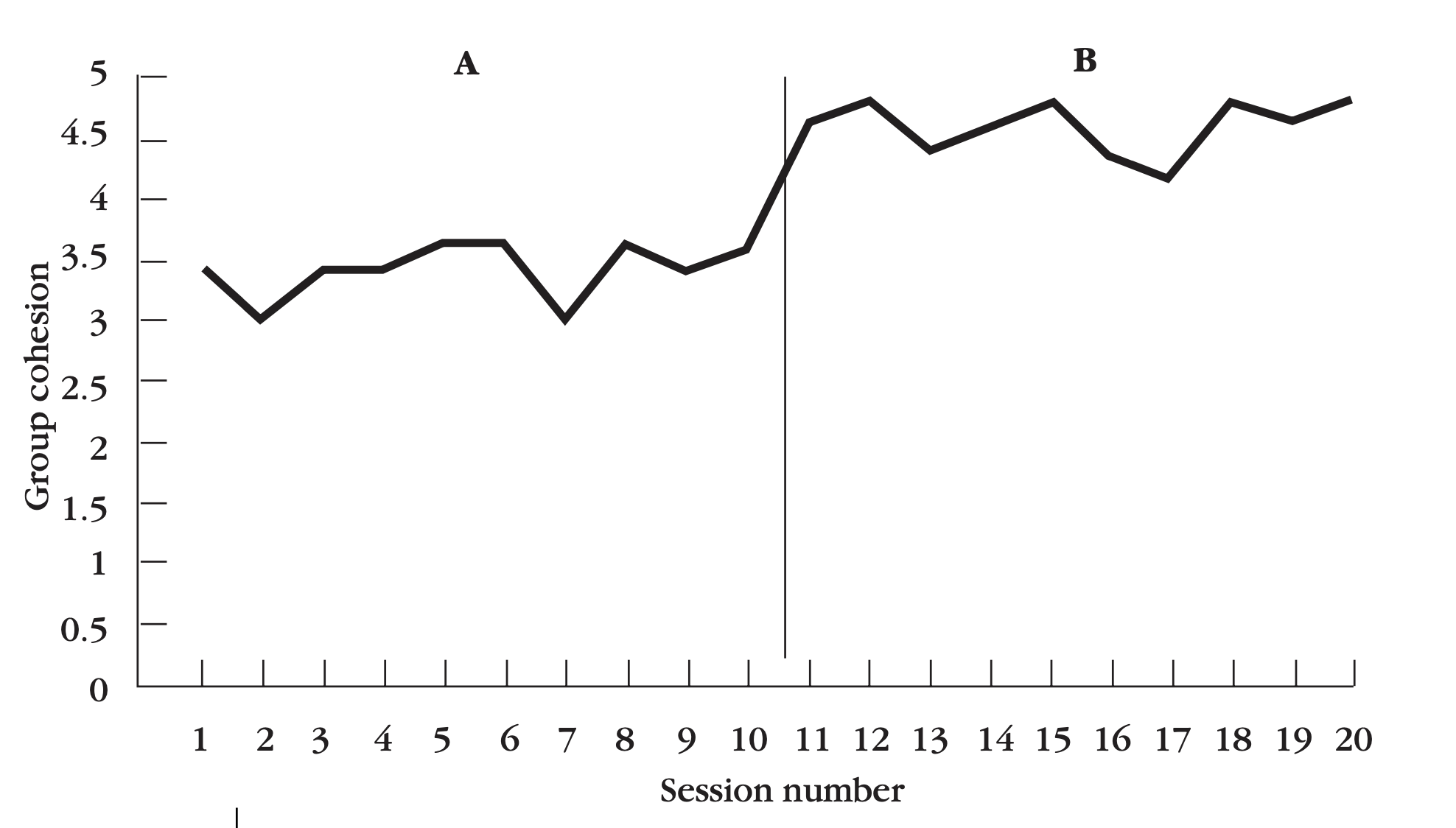 - B단계(처치): 이후 10회기 (‘돌아가며 주제 정하기’ 처치)